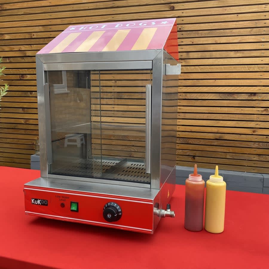 Our Machine can comfortably hold up to 100 Sausages and around 30 buns at a time, making sure no one will be going hungry!!