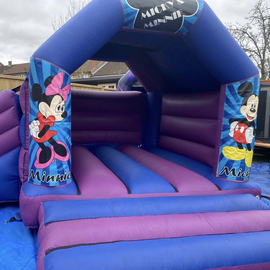 Here we have our 15ft x 18ft Mickey & Minnie Themed castle Slide Combi perfect for any Garden and medium to high halls